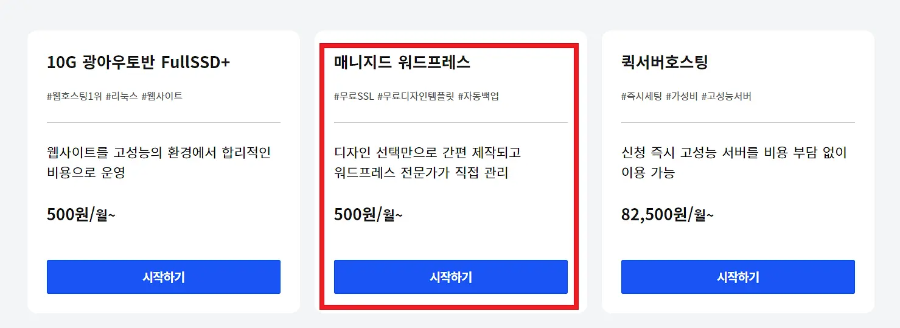 메인 페이지에서 "매니지드 워드프레스"를 선택합니다