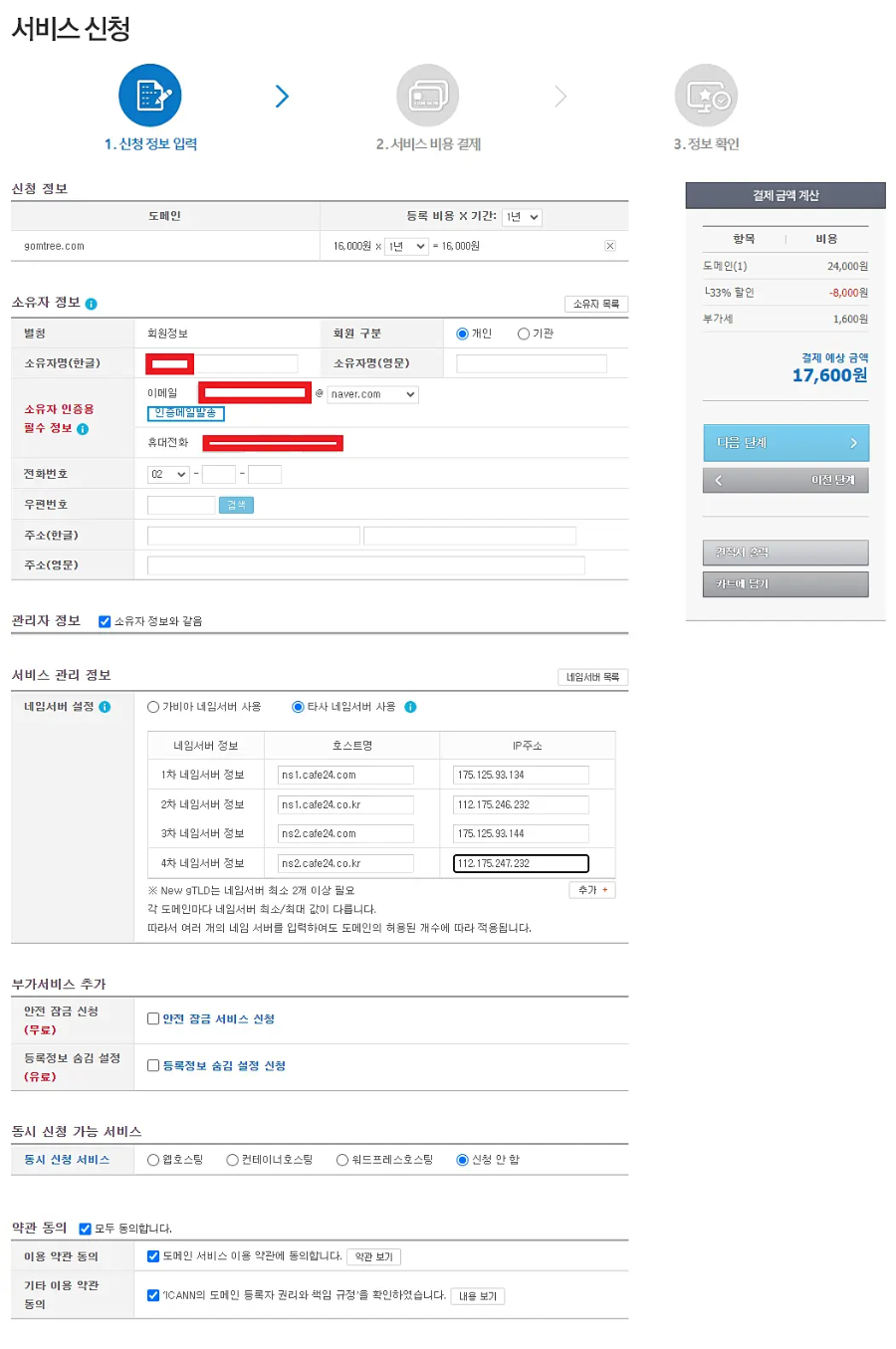 도메인은 가비아에서 구매하시는 것을 추천드립니다.
